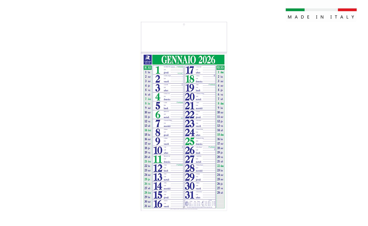 CALENDARIO OLANDESE MAXI 33x70 12 FOGLI
